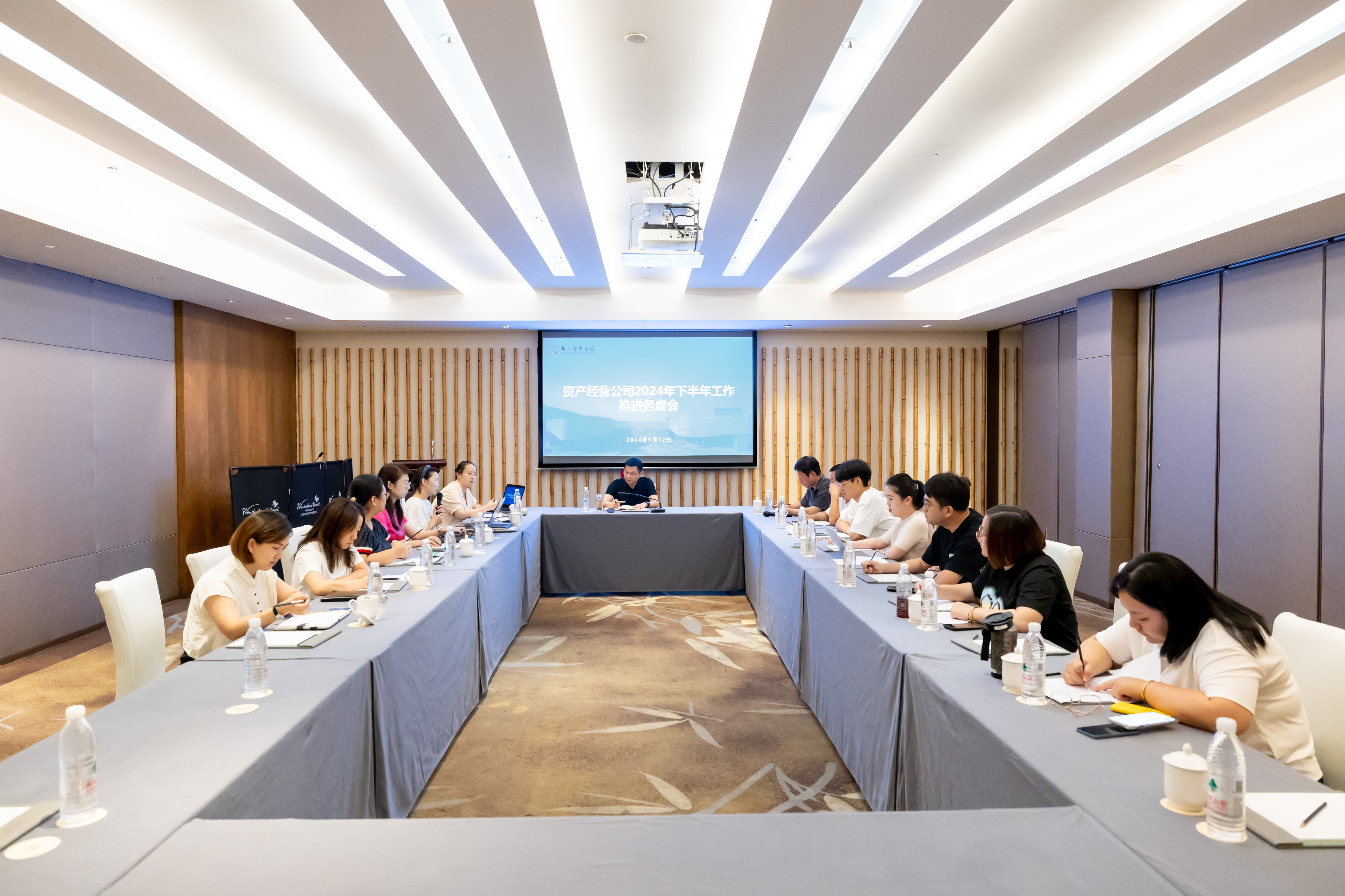 资产经营公司负责人就下阶段工作思路进行部署,他用“讲政治、谋发展、守底线”9个字指出了公司今后一个阶段发展的核心要义。他强调,一是要坚持用党的二十届三中全会精神统一思想,始终聚力为学校高质量发展保驾护航。全体员工要始终以服务学校、服务师生为出发点,以一盘棋的思想在工作中实现共融共创,加强合作碰撞,以系统思维和主人翁的思想带动公司全产业发展,为学校实现“七个一流”作为应有的贡献。二是要加快培育和发展新质生产力,以务实的举措推动公司改革创新落地落实。在持续打造好“浙音演艺”“浙音教培”“浙音直播”等品牌的基础上,加大线上数字经济领域的探索,积极谋划主营业务的功能发挥,在业态间形成合力,不断增强产业影响力和市场占有率。强化“一线、骨干、管理”三支团队的建设工作,切实增强队伍特别是管理队伍的把握力、驾驭力、担当力和执行力。三是要守好安全底线,把好生产安全和廉洁自律的预防关。务必关注食品、卫生、消防、聚集性场所疏散、宣传舆情等日常经营过程中的重点领域安全。严守廉洁办事的底线,从思想教育和制度规范两手严抓,形成风清气正的工作氛围。