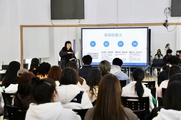 讲座过程中,屠锦英为同学们梳理了论文答辩的脉络,从答辩的意义到实战技巧,从评分标准到注意事项,都以清晰的逻辑和生动的案例进行讲解,助力他们更好应对即将到来的毕业答辩。她通过亲身经历和身边案例,鼓励同学们要敢于挑战自我、勇于表达观点,同时也要学会倾听他人的意见,不断完善自己的研究。最后,她针对答辩后的总结与反思环节,提醒同学们要认真听取评委老师的意见和建议,进一步完善自己的论文。