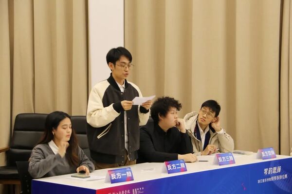 比赛中,辩手们围绕“音乐专业毕业生是先继续深造提升学历,还是直接求职敲开优质岗位大门?”“短视频的兴起,对当代大学生认知发展的利大于弊还是弊大于利?”“音乐专业未来就业市场,人工智能究竟是创造更多岗位,还是造成大规模失业?”三个辩题,进行了精彩的辩论。双方辩手以机锋迭出的雄辩风采、鞭辟入里的思想碰撞,为观众呈现了一场智慧火花与语言艺术的交响盛宴——他们以逻辑的锋芒丈量真理的维度,用思辨的炬火照亮认知的边界,不仅生动诠释了当代青年思维的锐度与深度,更淋漓尽致地展现了钢琴系学子朝气蓬勃、自信昂扬的青春风貌。
