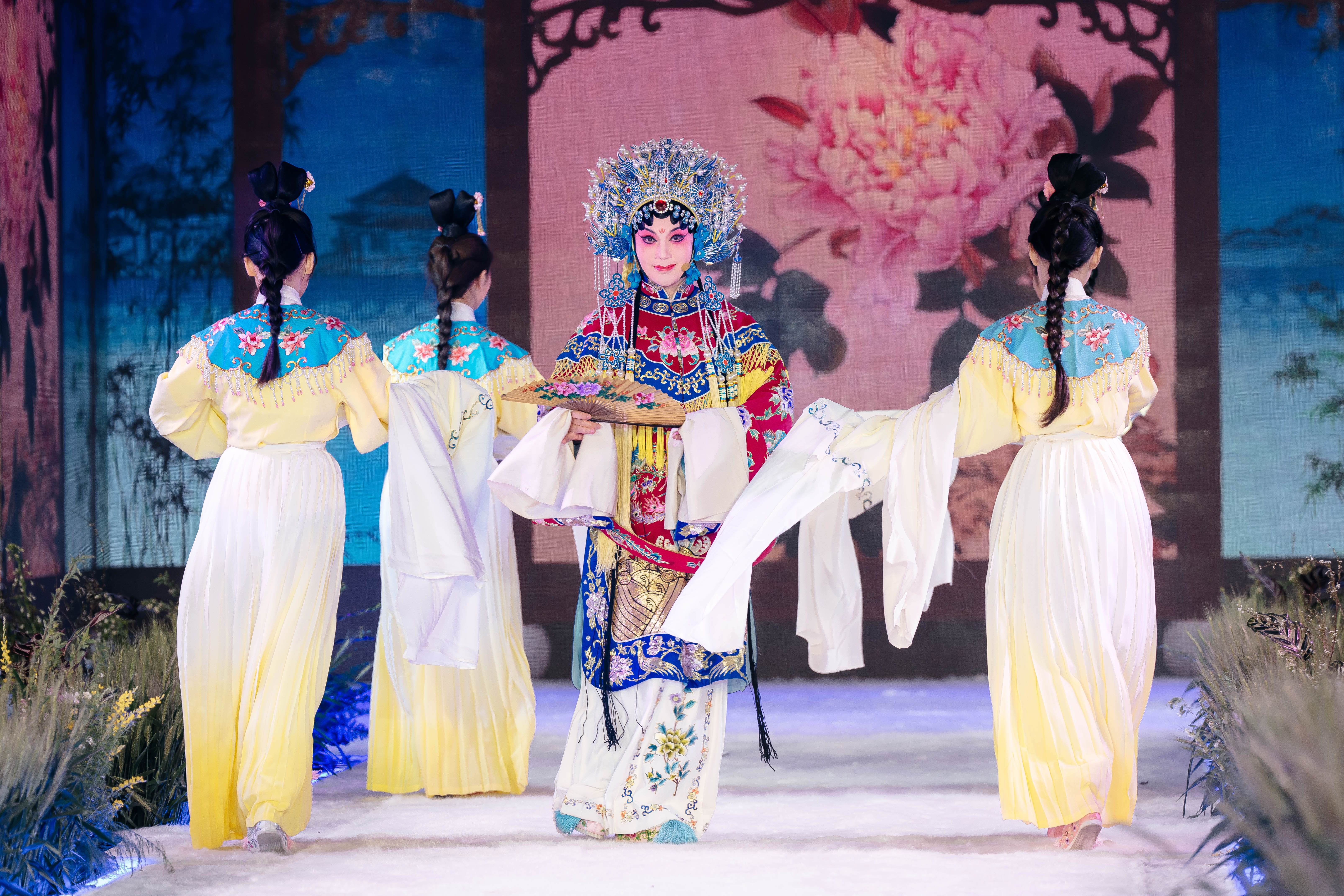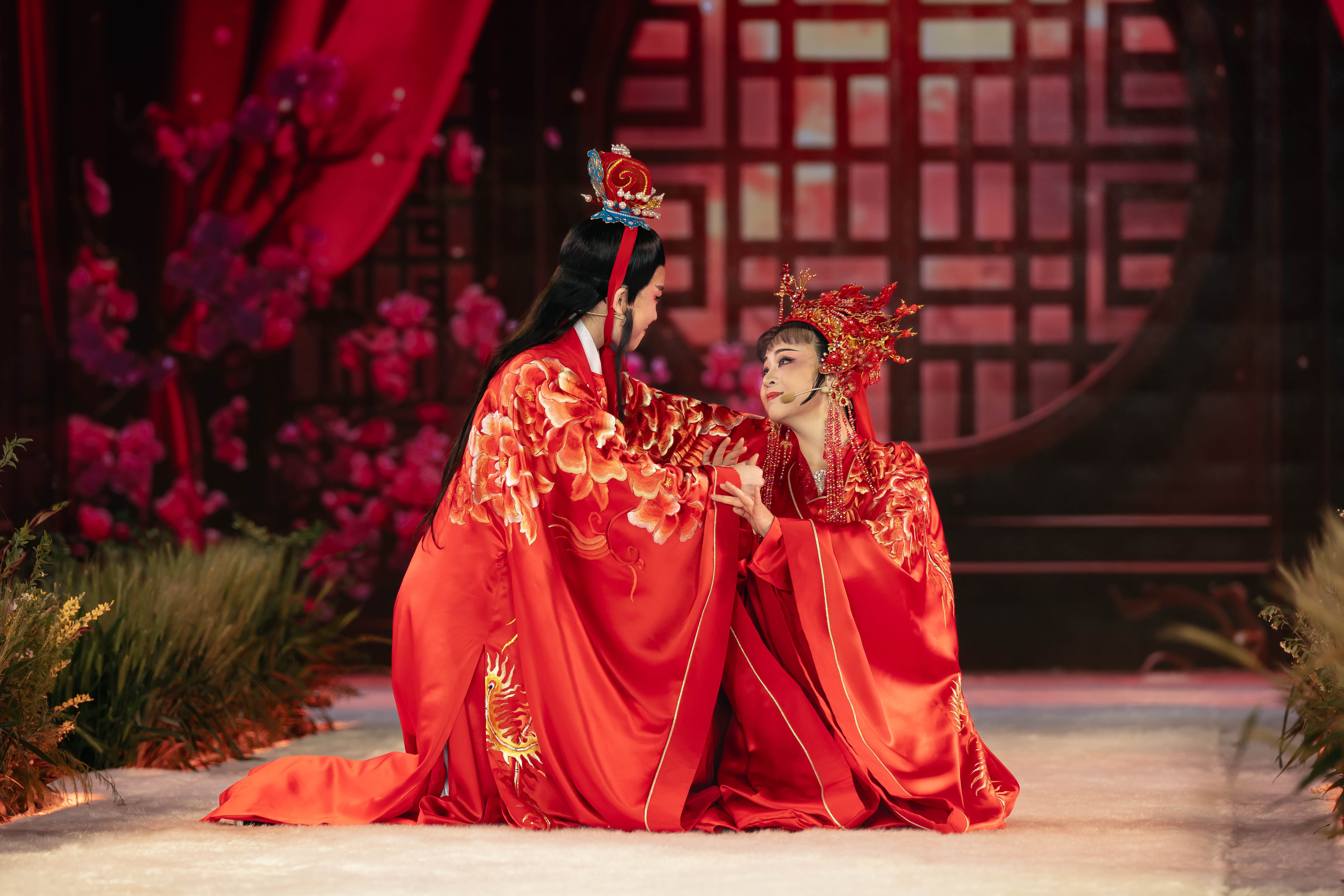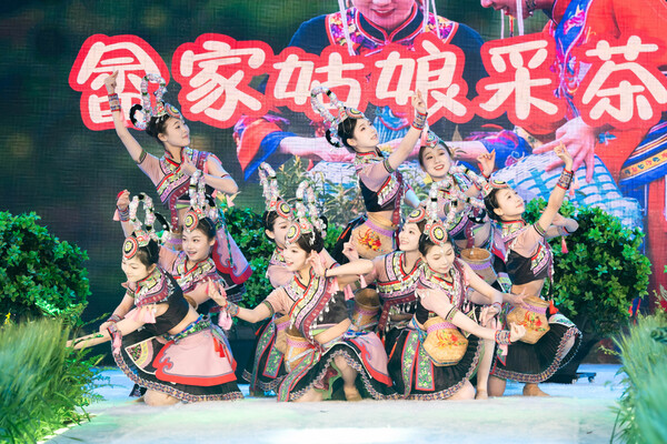 为展现浦山“三月三”文化基因,师生团队精心打造了“浙音学院秀”系列节目:舞蹈《畲家姑娘采茶忙》以畲族传统采茶动作为灵感,用现代编舞语言再现茶乡劳作的诗意画卷;原创音乐剧《欢庆三月三》将畲族山歌与现代音乐融合,以青春气息激活古老节庆;戏曲联唱《姹紫嫣红》则通过越剧经典唱段展现传统艺术的永恒魅力。从展现家国情怀的《战金山》到歌颂畲汉团结的《山哈一曲唱浦山》,节目既扎根非遗文化内核,又融入当代审美表达,成为课堂延伸至田野的生动实践。师生们深入茶山梯田、畲绣作坊采风,在民俗活动中捕捉创作灵感,真正实现了艺术创作与乡土文化的深度嵌合。