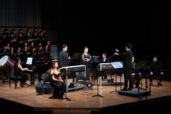 合唱学院秉承"艺术性、学术性、专业性、社会性"的办学理念,注重实践教学,先后与上海交响乐团、杭州爱乐乐团等知名乐团合作,完成了歌剧《图兰朵》《丑角》《爱之甘醇》《李清照》《江姐》,大型交响乐《红楼梦》《宋韵·华章》,贝多芬《d小调第九交响曲》等多部大型作品的演出,并在各类合唱赛事中屡获金奖。在本次音乐会中,合唱学院师生利用业余时间刻苦排练,攻克了晦涩的古拉丁语发音等难关,不仅展现了合唱学院的教学成果,更体现了学生们对艺术的热爱与追求。当《布兰诗歌》的最后一个音符消散,掌声既献给台上倾情演绎的青春力量,更献给那些在艺术长路上永不停歇的追光者。