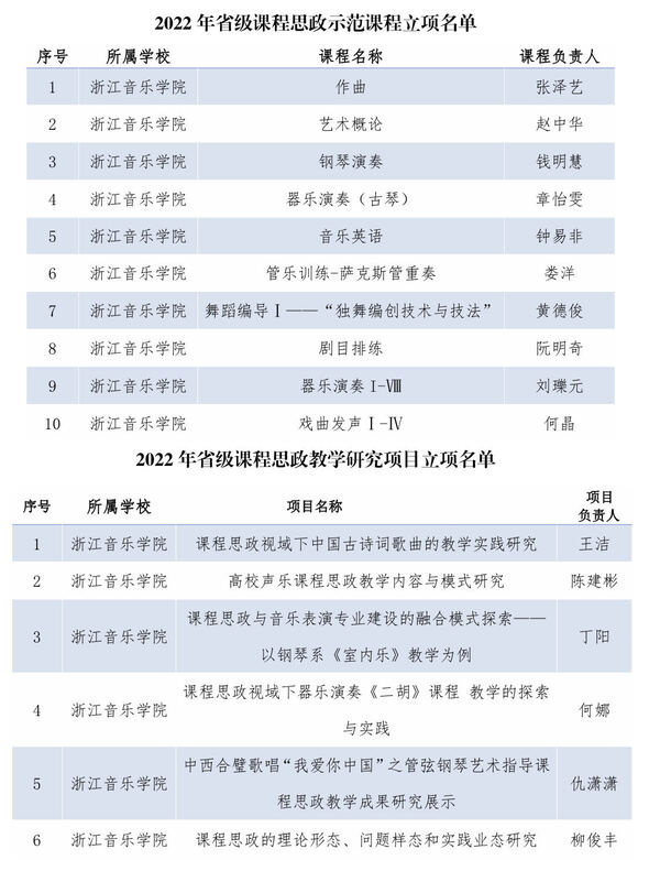 近日,浙江省教育厅印发了《关于公布2022年省级课程思政教学项目建设立项名单的通知》,学院成功入选2022年省级课程思政示范校。此外,学院推荐的《作曲》等10门课程思政示范课程、“课程思政视域下中国古诗词歌曲的教学实践研究”等6项课程思政教学研究项目、“欧美黑人巨大videos精品_欧美黑人巨大xxxxx_欧美黑人乱大交_欧美黑人乱大交_欧美黑人牲交videossexeso_欧美黑人添添高潮a片www_欧美黑人添添高潮a片www_欧美黑人性暴力猛交喷水黑人巨大音教学院课程思政示范教学团队”作为课程思政示范基层教学组织也同时入选本次建设立项名单。
