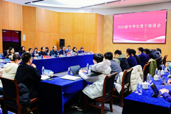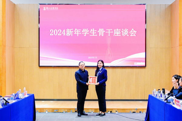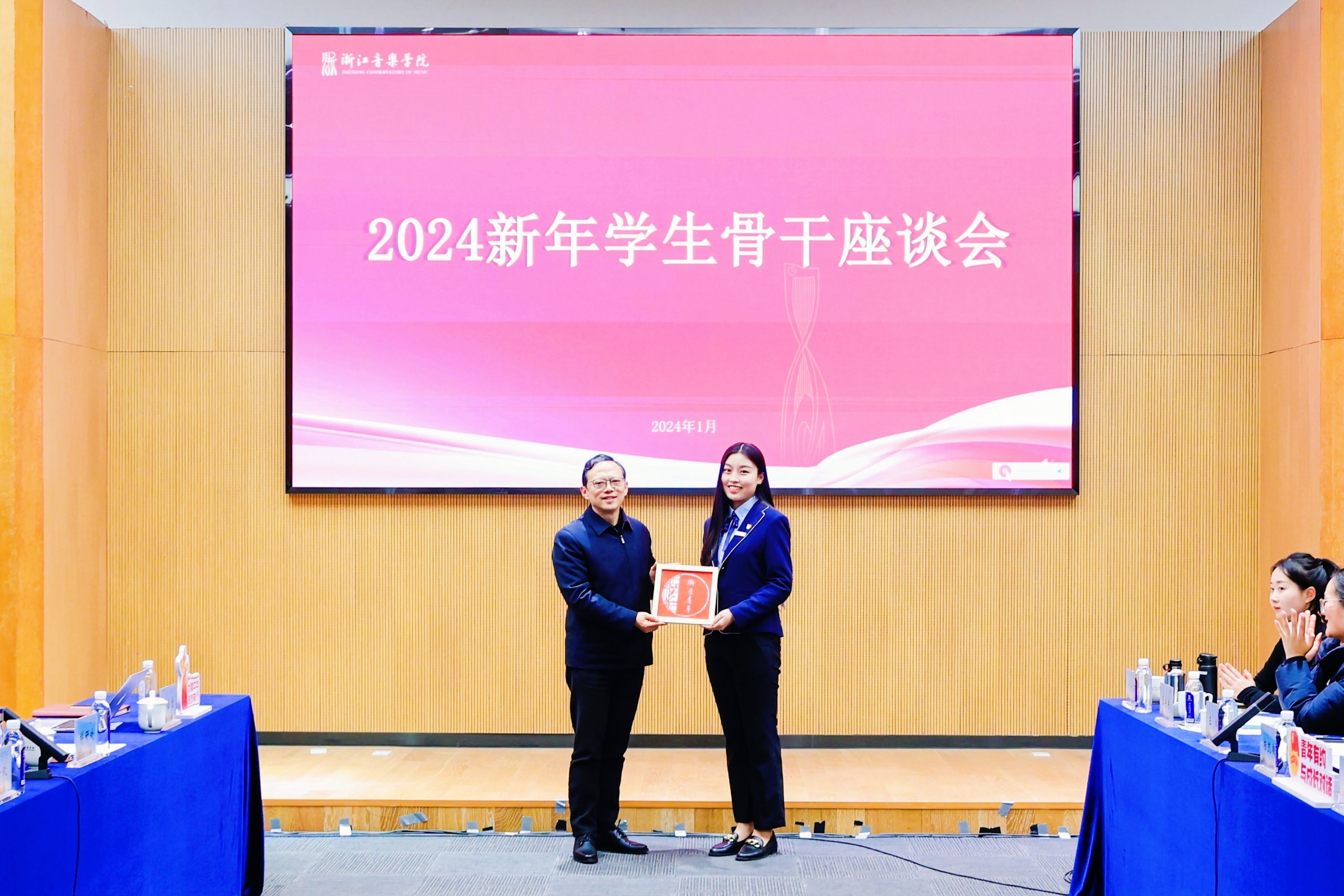校社联主席团成员、音乐教育学院本科生章琦,省“挑战杯”获奖者、音乐学系研究生张政裕,中国国际大学生创新创业大赛金奖项目团队成员、流行音乐系研究生耿露宇,校研究生会主席团成员、国家奖学金获得者、国乐系研究生王刘作等代表在交流发言中,分别从综合能力提升、学术创新、创新创业和实践育人等角度,畅谈过去一年的学习收获,分享在浙音学习的所思所悟。座谈会最后,省新世纪人才学院学员、校研究生会主席团成员、艺术与文化管理高等研究院研究生吴永洁代表浙音青年向校领导赠送了贺新年手工剪纸。
