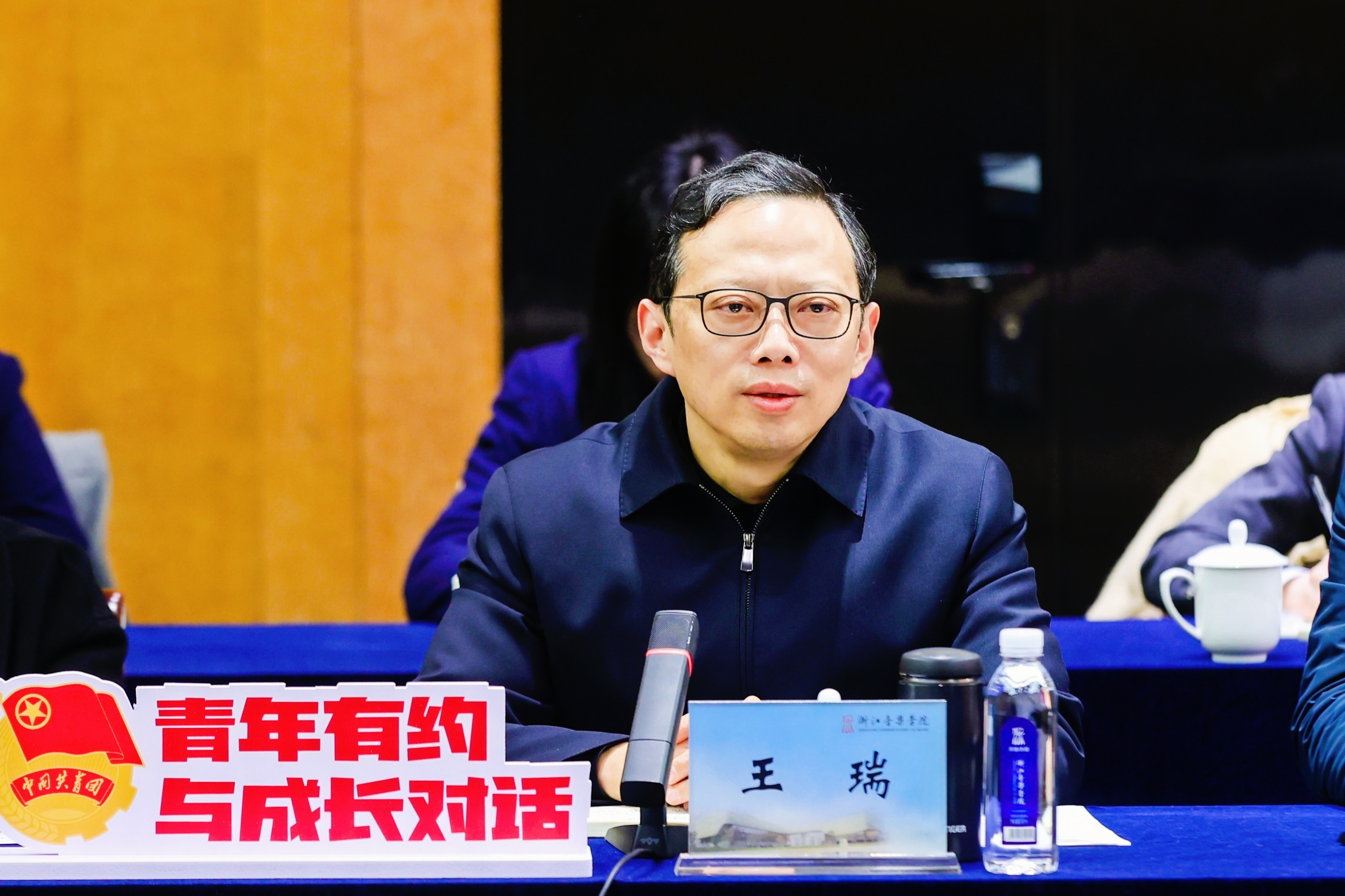 座谈会上,王瑞对浙音青年过去一年所取得的成绩给予充分肯定,并对新一年的工作提出了希望和要求。他从中华民族源远流长的音乐文化讲起,指出音乐是中华优秀传统文化的重要组成部分,每位浙音青年学子都要为自己所从事的艺术事业自信、自豪。他对同学们提出两点期望和要求:一要常怀初心,夯实专业知识,磨炼个人意志,塑造优秀品格;二要守正创新,坚持以人民为中心的艺术导向,用高度的文化自信和家国情怀,响应国家所需、回应人民所盼,用艺术讲好中国故事,提升中国文化传播力。他强调,浙音青年要能吃苦、有担当、肯奉献,锚定新定位、扛起新使命,以更加优异的成绩为文化强省和共同富裕示范区建设贡献青春力量。