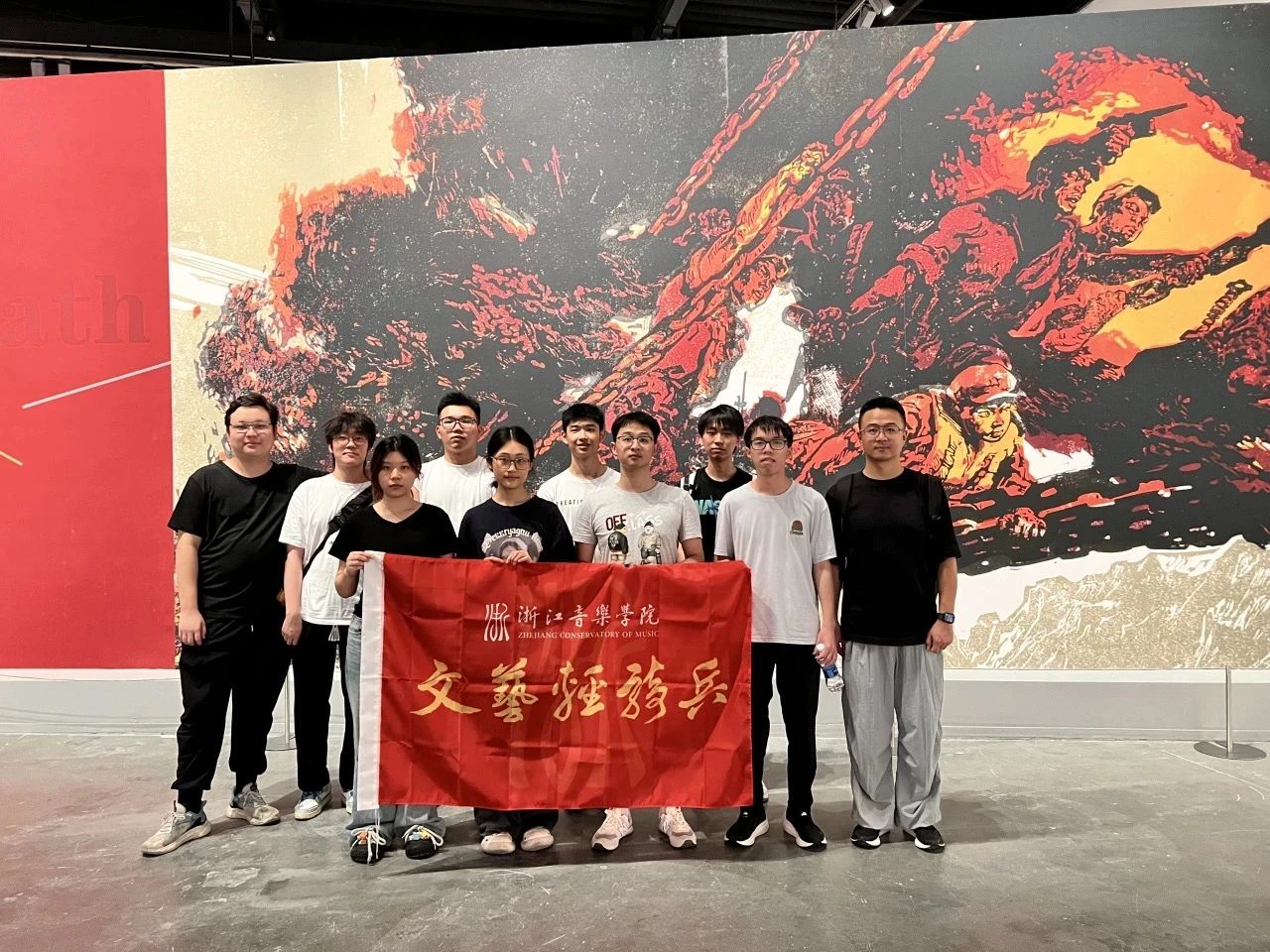“唱响新民歌·同走共富路”实践团由作曲与指挥系师生组成。他们奔赴宁波,紧密围绕“宁波甬剧”开展实地调研、循迹溯源、文化体验等主题系列活动,近距离感受宁波“书藏古今,港通天下”的文化魅力。作为新时代文艺创作者,他们与甬剧、文人音乐、红色故事绘画等多种艺术形式碰撞出了新的创作灵感。