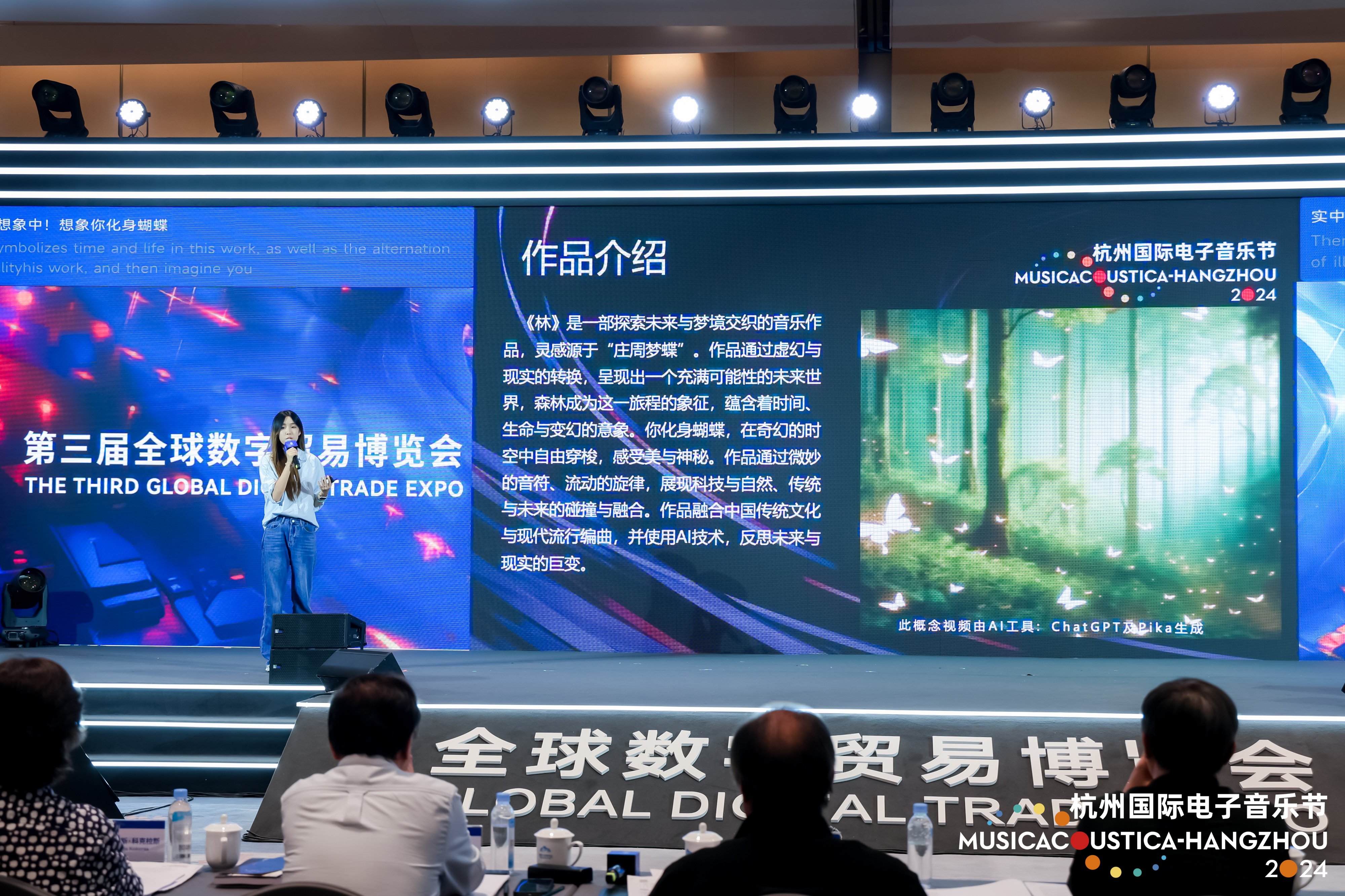 比赛现场,选手们通过介绍、答辩、作品展示等环节,充分展示了他们对AI与人脑融合参与音乐创作的深刻理解。在词曲创作、演唱、混音等方方面面,展现了数智时代下音乐人的各种“奇思妙想”。值得注意的是,大会没有为参赛选手设置高门槛,并欢迎社会音乐爱好者的广泛参与,从而汇集更多AI参与的创作路径、体现更多最新成果。许多青年作曲家和业余爱好者的加入,使现场气氛活跃、惊喜连连。