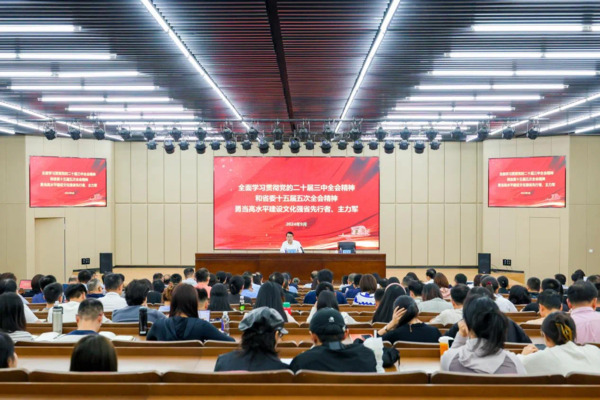 赵承围绕“全面学习贯彻党的二十届三中全会精神和省委十五届五次全会精神,勇当高水平建设文化强省先行者、主力军”主题,从“感悟改革之道、筑牢思想之基、塑造文化之魂、彰显担当之力”四个方面,与学校师生进行了深入交流。赵承强调,党的二十届三中全会是在以中国式现代化全面推进强国建设、民族伟大复兴的关键时期召开的十分重要的会议,既是党的十八届三中全会以来全面深化改革的实践续篇,也是新征程推进中国式现代化的时代新篇。要从宏大主题、远大目标、重大原则、庞大工程、强大保证等方面,准确理解把握党的二十届三中全会精神。赵承从“一个战略统领”、“三个再”“五个更”奋斗目标、“7个高水平”、“14个攻坚突破”、“11个方面改革举措”等方面,全面解读了省委十五届五次全会精神,要求学校师生深入理解进一步全面深化改革、推进中国式现代化省域先行的内在逻辑和核心要义,切实把思想和行动统一到中央和省委决策部署上来。