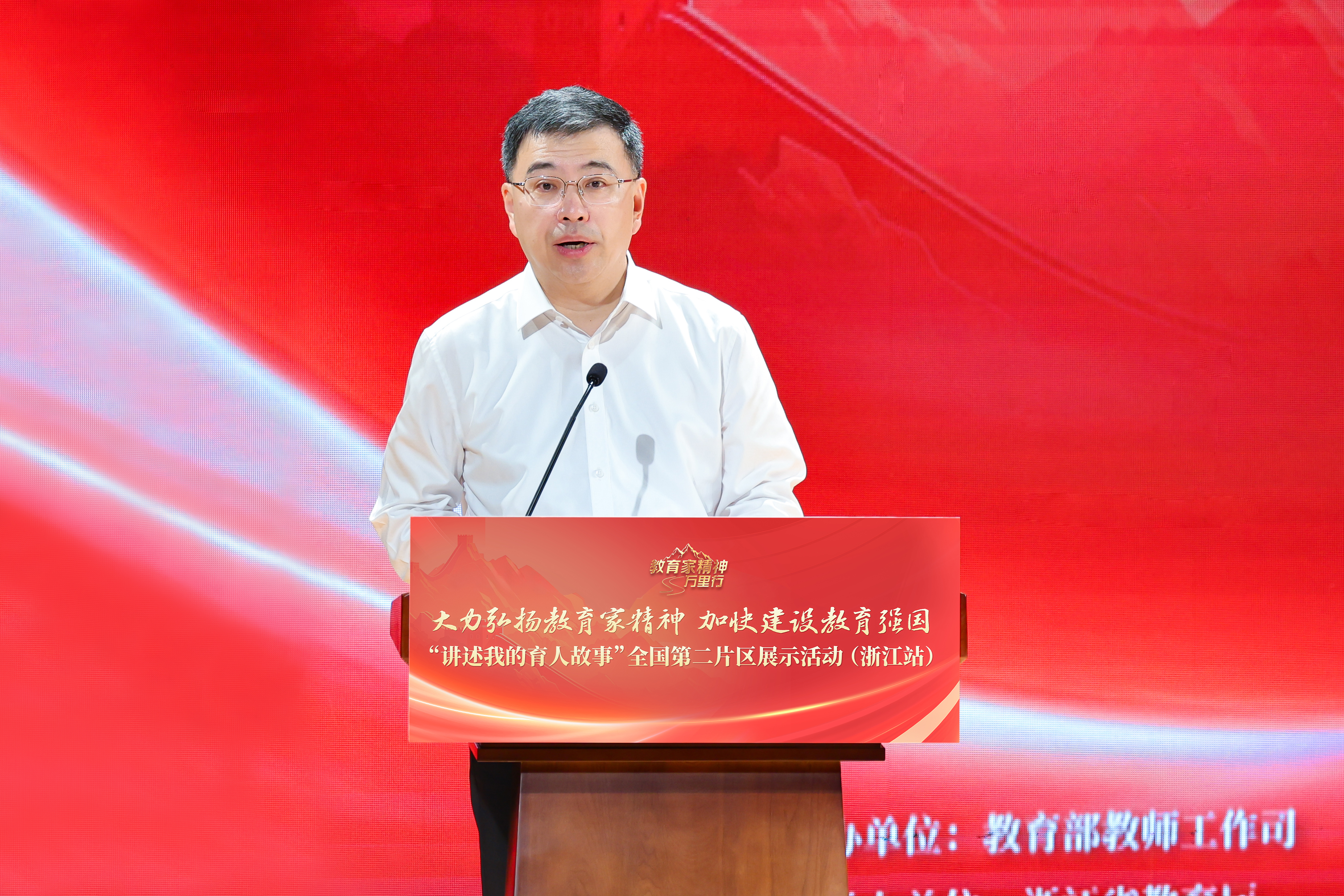舒培冬在致辞中表示,在奋力推进高质量发展建设共同富裕示范区大背景下,浙江以打造“浙里优学”金名片为主线,全面实施教育现代化战略和高等教育强省战略。今天的西湖之约,是七省市教育智慧的双向奔赴,希望21位讲述人用 “沾泥土、带露珠、冒热气” 的故事,传递“育人不是孤勇者的跋涉,而是一群人的星火燎原”,让本次活动成为教育家精神传播的 “加油站”、省市教育协作的 “连心桥”。浙江也将以此次活动为契机,深入打造弘扬教育家精神高地,努力建设一支高素质专业化教师队伍,让更多 “大先生” 的身影出现在教育强国的征程上。