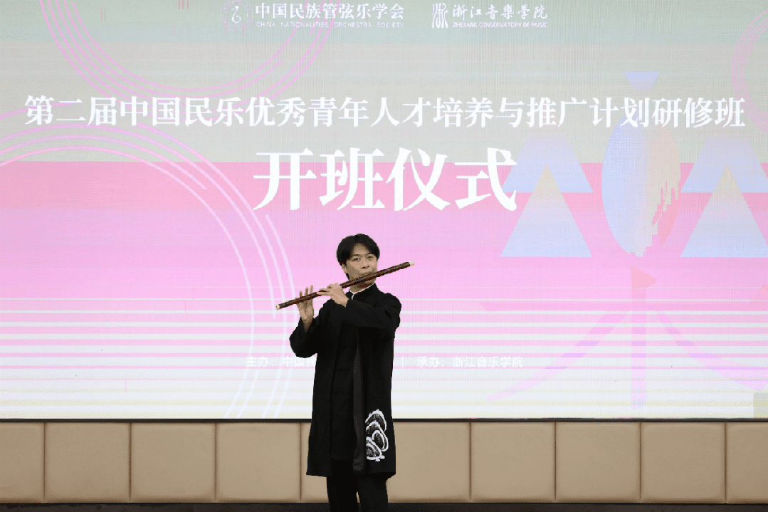 吴玉霞在致辞中表示,当前世界正处于百年未有之大变局,人才竞争已成为国家竞争的核心。中国民族管弦乐学会积极响应国家人才强国战略,以培养德才兼备的高素质民乐人才为己任。本届研修班学员涵盖来自学会21个专业艺术委员会推选代表,金钟奖、文华奖等重大赛事获奖者,音乐院校青年教师、院团演奏骨干,以及优秀社会教育者和各省学会推荐人才,所有学员均在40岁以下,体现出项目聚焦青年、培育新秀的明确导向。她表示,研修班通过专家授课、音乐对谈、学术研讨与交流分享等多元形式,突破传统教学模式,着力增强青年人才的归属感、荣誉感和责任感。希望学员珍惜机会、互学互鉴,不断提升艺术修养与文化视野,加强道德品格修炼,努力成为德艺双馨的艺术工作者。